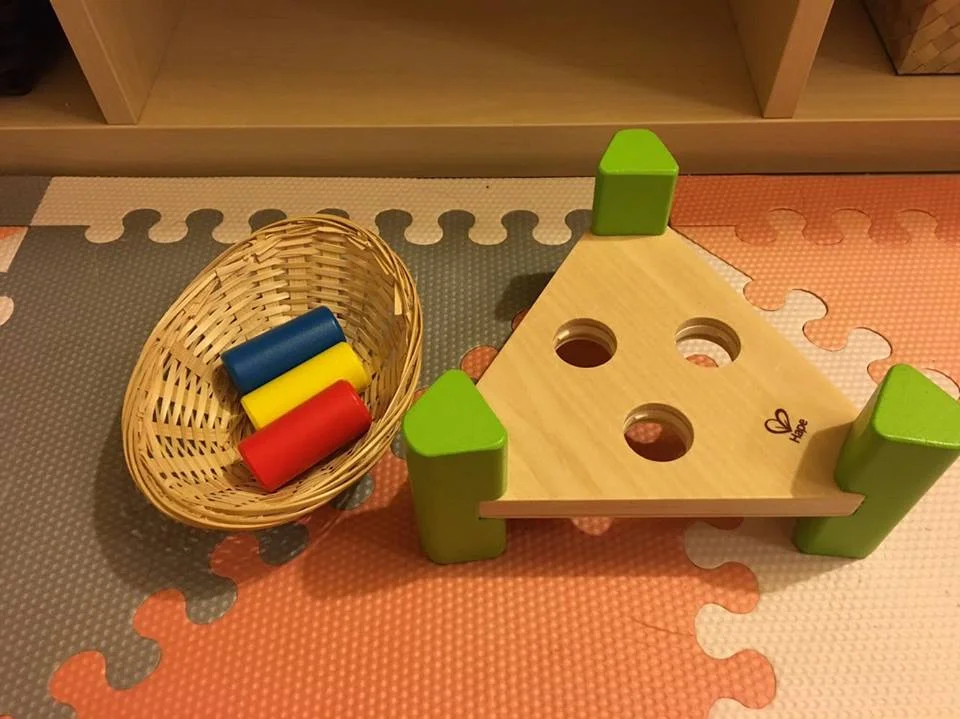 And that's what's on her shelf in her playroom for now. We have a few more peg activities to switch out when she masters some of these easier ones, and I can't wait to see how her work progresses now that she's in young toddler stage and not a little baby anymore. What are your favourite toys for a brand new toddler?